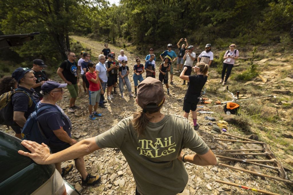 Tras la pausa para la comida había la opción de escoger 4 actividades diferentes, todas ellas en exteriores, un mini curso de Trailbuilding con Maia y Bea, una charla sobre el estudio realizado en el Geoparque del Sobrarbe sobre la erosión con una caminata posterior para ver esos resultados en vivo, y otra charla sobre el diseño de caminos antiguos, su recuperación y trabajos de mantenimiento.