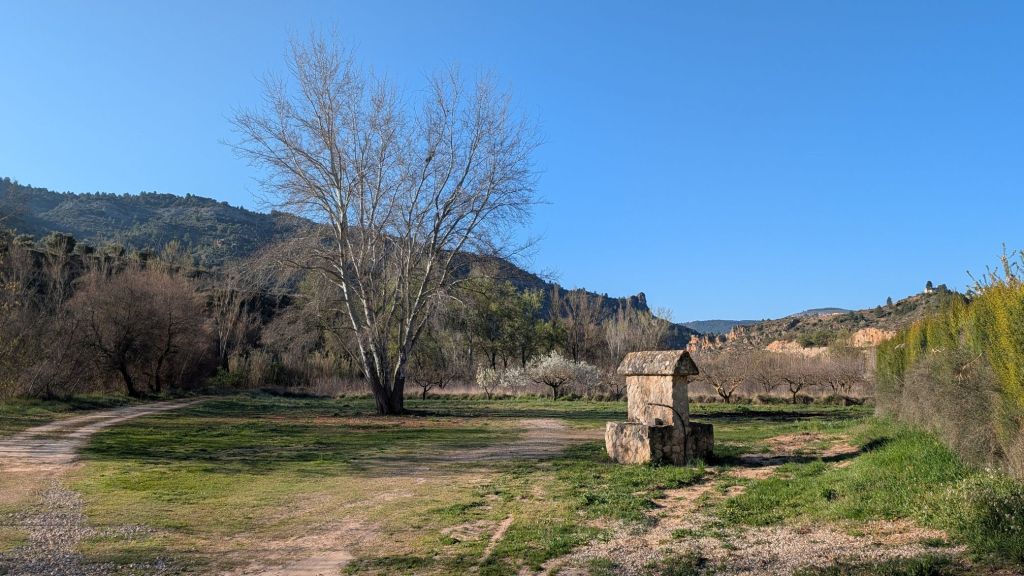 Una vez aparcado en el área recreativa del Molino de Casa Bajas de inmediato sentí esa tranquilidad y relajación que cada vez me acompaña en sitios como este. Rodeado de chopos, sabinas, sauces, higueras, oliveras y con el ruido del agua del Turia fluyendo, te dan ganas de sentarte, relajarte, y disfrutar de una naturaleza practicamente imperturbada, y acogerte a un ritmo de vida diferente, donde las cosas se hacen como antaño, con pasión, paciencia y mucho tezón.