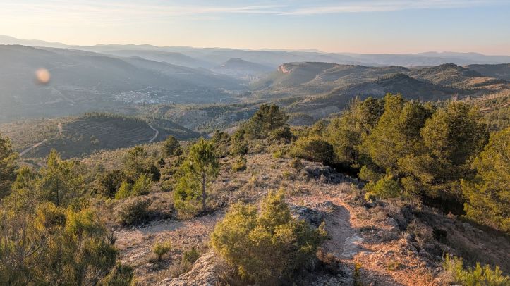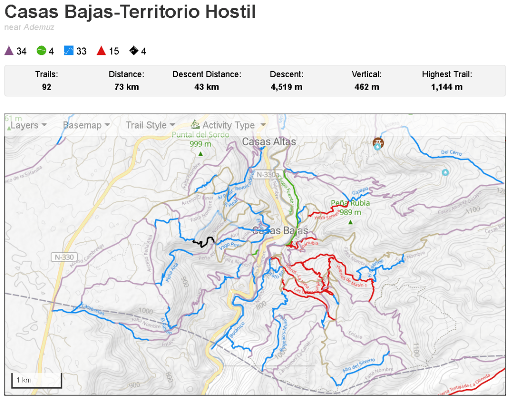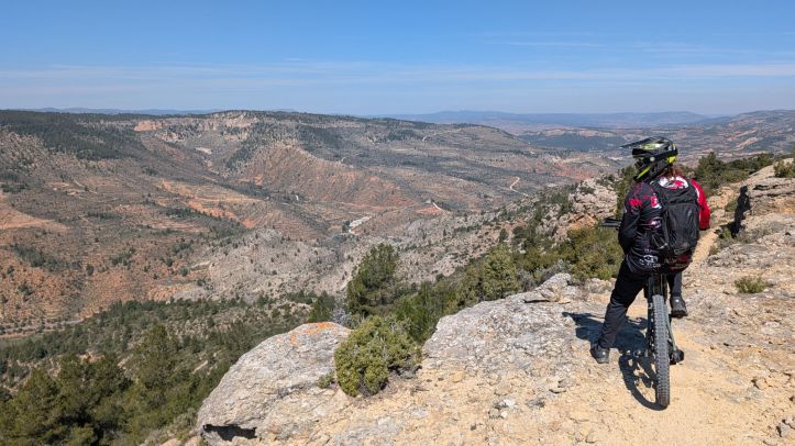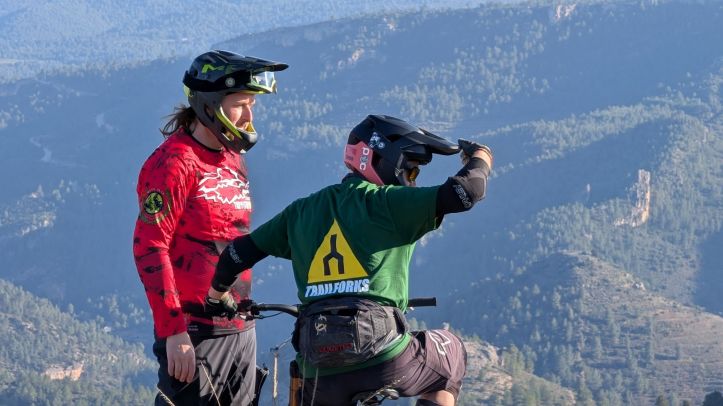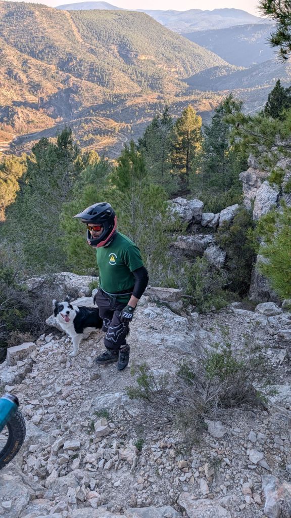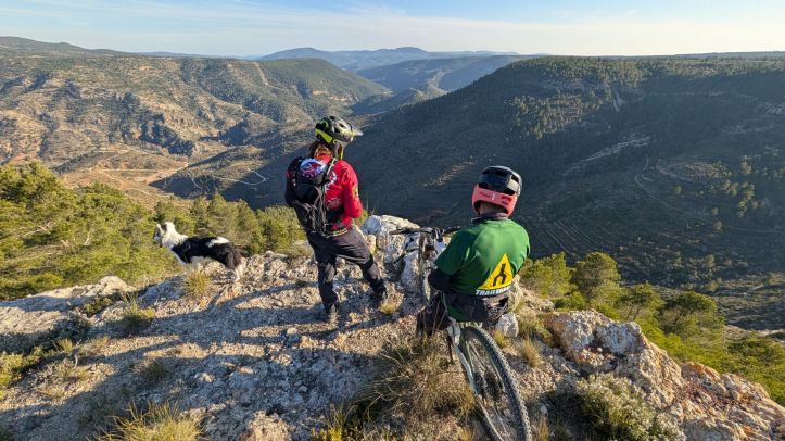 Mis senderos recomendados serían Gazapo + Hoya Somera por las vistas tan impresionantes sobre todo el valle, sobre todo hacerla al atardecer. Desde el punto de vista más técnico y disfrute endurero, Rogelio DH, Peñas del Gordo, Ibero y La Mina son imperdibles. Con un terreno agreste y pedregoso por momentos hay pasos técnicos en los que no debes de quitar la vista del camino, pero quitando un paso puntual en Peñas del Gordo y quizás uno más en el resto, todo es perfectamente asequible para cualquiera con un nivel medio. Pude catar también una pequeña joya que están casi acabando que estoy seguro será del gusto de todos. Solo te adelanto que será una azul muy muy fluida, con pequeños dobles, muchos peraltes y muy rápida. Todos estos caminos están por supuesto mapeados en Trailforks.