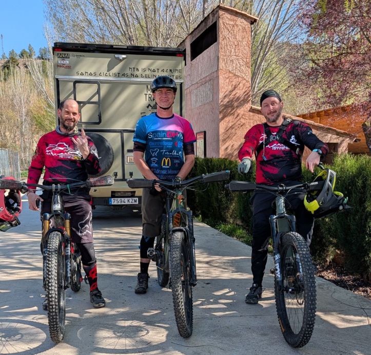 Tras dos días haciendo rutas por la zona con Rogelio, Saúl y Lore de guías y acompañantes puedo decir que es un sitio que indudablemente debes visitar si te gusta el mountain bike. Aunque el nombre Territorio Hostil te parezca algo amenazante, no te lo creas, es una estrategia para que la gente no venga… XD…. saben que tienen un tesoro escondido y con ese nombre asustaviejas creen que la gente no vendrá….jajajajaja!! Pues nada, ya te digo que tienes que venir y probar los caminos que han recuperado y han trabajado para hacer más acordes al uso con la bici. Peraltes, apoyos, saltos, encontrarás de todo en sus caminos, todo trabajado arduamente en un terreno nada propicio para trabajar, con mucha piedra suelta y gravilla que no ayuda. Pero poco a poco, con paciencia y tezón han logrado recuperar una red de senderos que no te dejará indiferente.