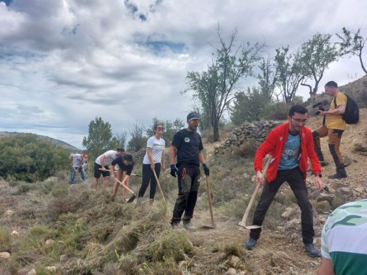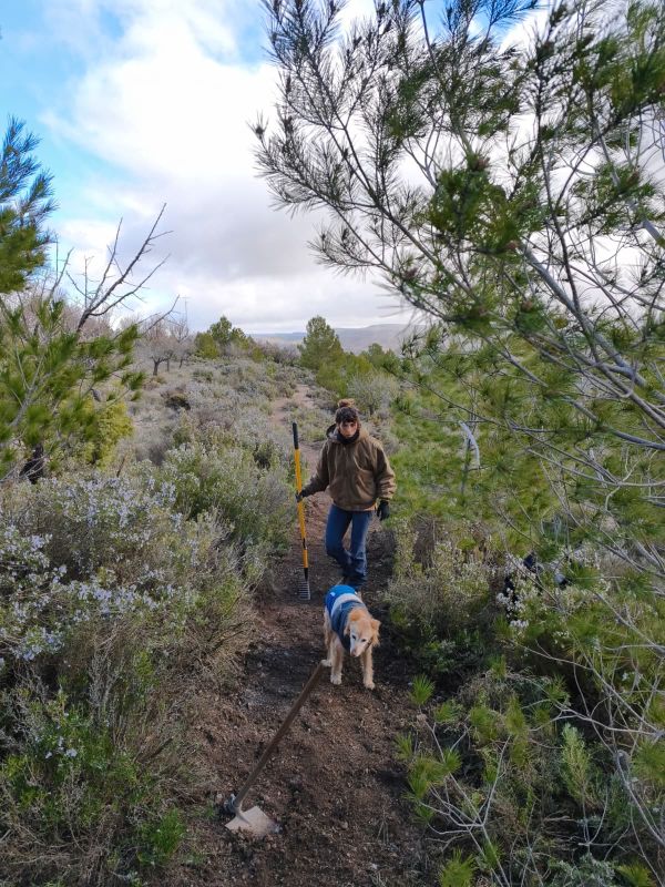 Tras varios años trabajando en los caminos, recuperando algunos casi olvidados con la ayuda de las historias locales, mapas antiguos y el patearse el monte buscando accesos a barracas derruidas; han logrado crear una red de senderos bien comunicados a través de varias pistas de acceso. Con estos trabajos de voluntarios, chavales del pueblo y gente que viene a echar una mano de fuera, se han sacado a la luz caminos perdidos que llevaban a antigos terrenos de cultivo, barracas, miradores o simplemente a pueblos del valle de al lado. Me cuentan que algún lugareño que ya roza los cien años ha confesado casi entre lágrimas a Rogelio que logró acceder a un terreno que tenía su padre y donde juntos pasaron muchos años de su niñez. Imaginate los sentimientos que te deja algo así, las ganas que te dan de seguir trabajando para la comunidad y para ti mismo. Necesitamos más Rogelios, Saúles y Lores en cada pueblo de España.