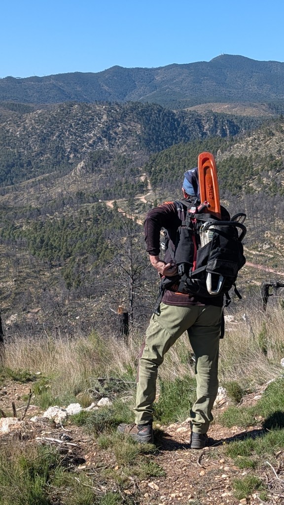 Se podrían recuperar el doble o el triple de caminos, pero Vicent no tendría tiempo material de mantenerlos todos. Con un apoyo limitadísimo y practicamente inexistente del gobierno local y un aporte casi nulo de otras entidades, Vicent ha tenido claro que apostar por la calidad en lugar de la cantidad es lo que le permite mantener abiertos senderos que de otra manera nadie podría usar. E incluso así, con desastres como el fuego de hace un par de años que arrasó varias rutas completas, una nevada en el 2017 que dejó miles de árboles en el suelo y una dana el año pasado que arrasó kilómetros, es como la maldición de Sísifo, quitas un árbol, caen 2, quitas 2 árboles, caen 4, limpias un desagüe y se colapsan 2 más. Pero contra viento, fuego y lluvia Vicent increiblemente logra mantener la practica totalidad del recorrido de sus rutas limpias y preparadas para que todos las disfrutemos.